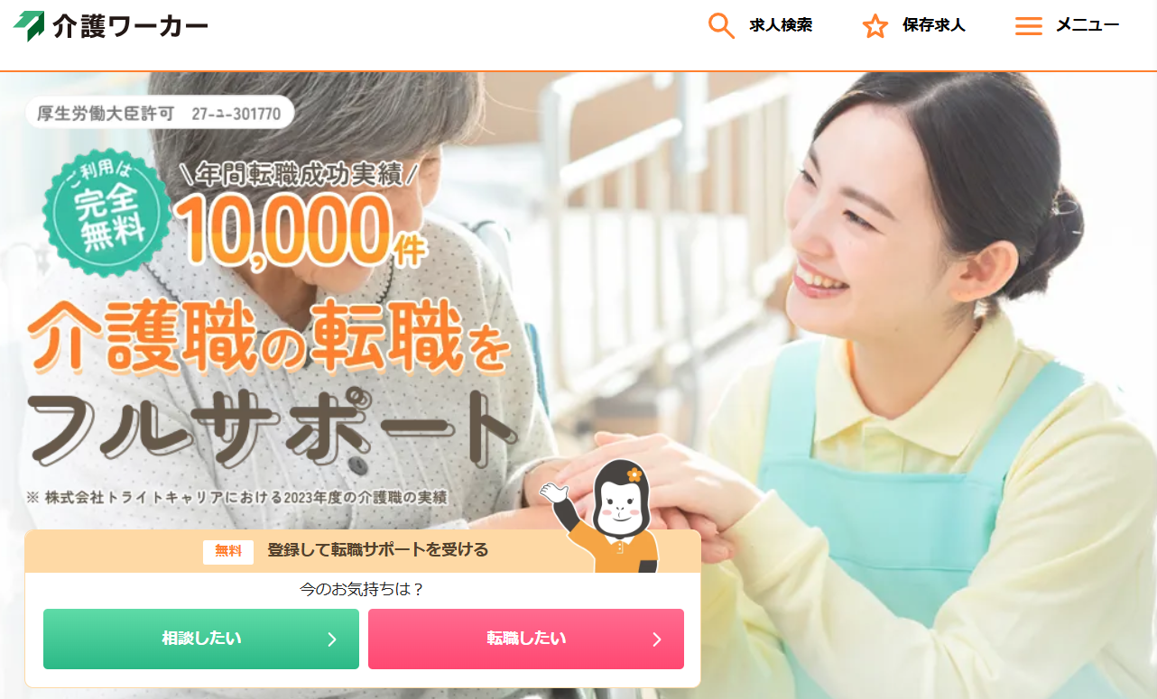 介護ワーカーは、介護職の転職・就職活動を無料でサポートしています。